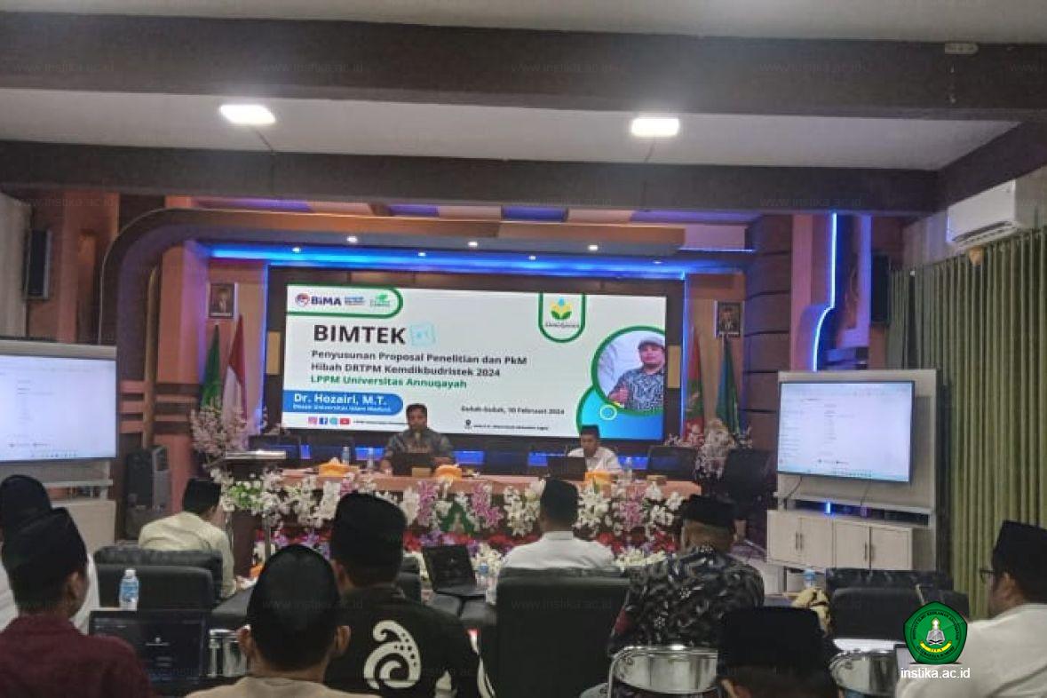 Guluk-Guluk – INSTIKA – Kepala Lembaga Penelitian dan Pengabdian kepada Masyarakat (LP2M) Institut Ilmu Keislaman Annuqayah (Instika) (UA) Paisun, M.Pd mengatakan, Bimtek dan Penyusunan Proposal Penelitian dan Pengabdian Kepada Masyarakat Hibah Direktorat Riset, Teknologi dan Pengabdian kepada Masyarakat (DRTPM) melalui BIMA TA 2024 dihelat untuk meningkatkan kemampuan dosen dalam penelitian dan pengabdian masyarakat.